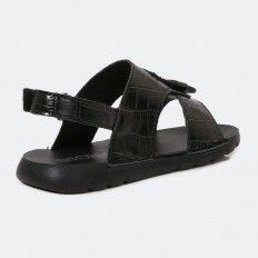 صندل مسطح بتصميم كلاسيكي مع مشبك قابل للتعديل وجهة علوية بخامة من الجلد بنقشة جلد الأفعى ليتمتع طفلك بالجمال والسحر عند تجربة هذا الحذاء