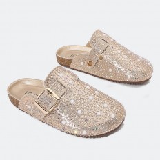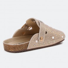نعال ذو مقدمة مغلقة مستديرة، وتصميم أنيق مزين بالستراس, مريح ومناسب للإستخدام اليومي، اختاريه لإطلالة طفلتك