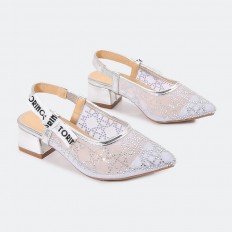 GML942 صندل كعب بناتي ذو مقدمة من التول المزين بالستراس