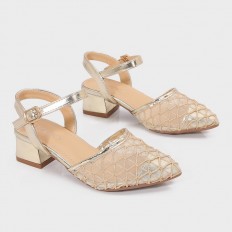 GML946 صندل كعب بناتي ذو مقدمة مغلقة بخامة من التول
