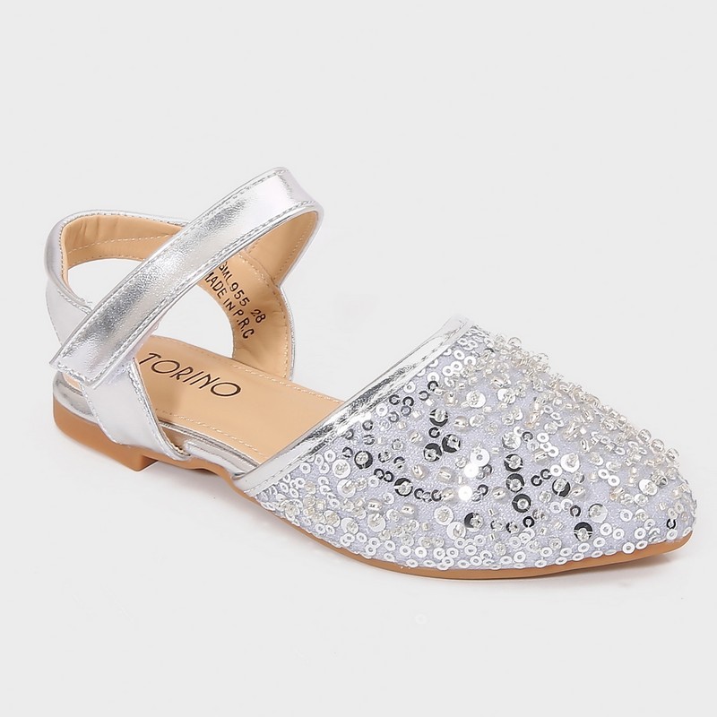 صندل بناتي من تورينو، ذو مقدمة مستديرة مزينة بالترتر، مع إبزيم أمامي لاصق للإغلاق، اختاري الأمثل لطفلتك