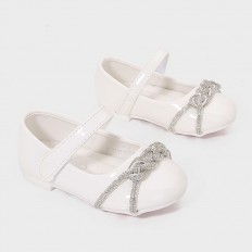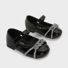 Let your little one live an experience of comfort and elegance like princesses with Torino patent leather shoes decorated on the front with a buckle designed from two sparkling crystal strips, available in bright colors