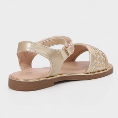 Flat and comfortable girls sandals with a beautiful patterned tulle upper with adhesive front buckle for an elegant look, get it now from Turin