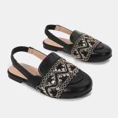 GSM773 صندل مسطح بناتي مزين بجزء من التول المطرز