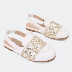 GSM773 صندل مسطح بناتي مزين بجزء من التول المطرز - Torino