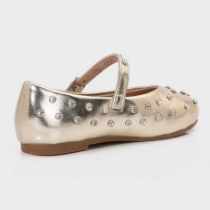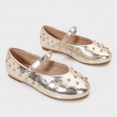 Let your girl's look be complete with these shoes, with an elegant design closed at the front decorated with a distinctive stras, with a front buckle closure