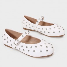 GSM789 حذاء بناتي من الجلد اللامع المزين بالستراس