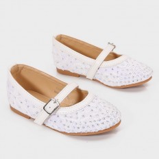 GSM958 حذاء بناتي أنيق بخامة من الدانتيل المزين بالستراس
