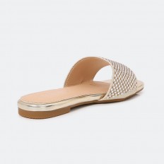 نقدم لكم نعال مسطح ذو تصميم جذاب مزين بحبات الستراس , مريح ومناسب لكافة الأوقات