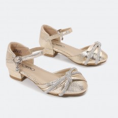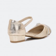 دعوا إطلالة فتاتكم تكتمل مع هذا الحذاء ذو كعب صغير, بتصميم أنيق مغلق من الأمام مزين بالكريستال , مع حزام كاحل و إبزيم للإغلاق