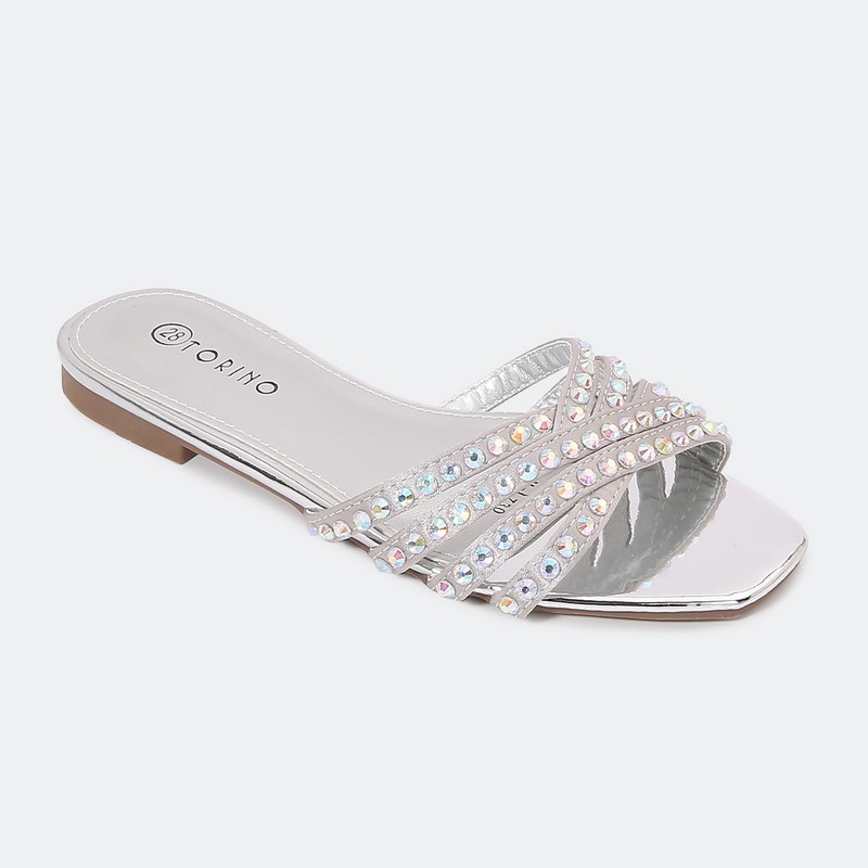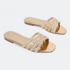 نقدم لكم نعال مسطح ذو تصميم جذاب مزين بالستراس , مريح ومناسب لكافة الأوقات