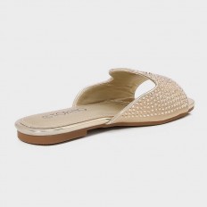 نقدم لكم نعال مسطح بناتي ذو تصميم لامع مزين بحبات الستراس , مريح ومناسب للإستخدام اليومي، اختاري الأفضل لطفلتك