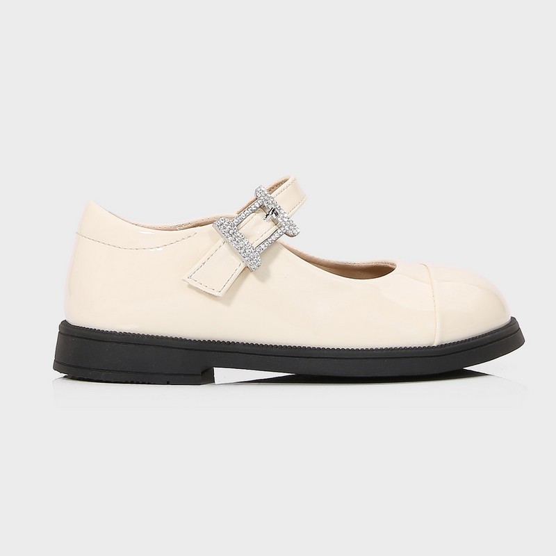 حذاء للبنات ناعم وأنيق للارتقاء بأناقة طفلتك في كل مكان تكون به. كما أنه مثالي للغاية لأوقات الصيف السعيدة. ذو خامة من الجلدالصناعي اللامع مع ابزيم أمامي للإغلاق مزين باكسسوار.