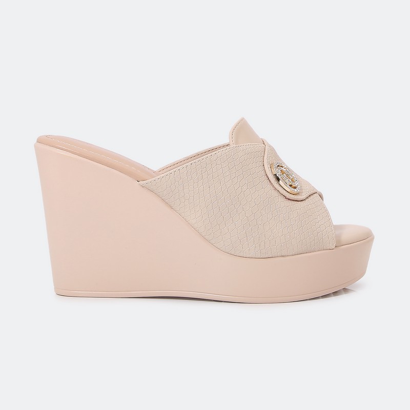 تألقي مع هذا النعال بكعب 9 سم , يتميز بتصميم أنيق مزين بإكسسوار ناعم , و أرضية مدعمة مريحة للإستخدام اليومي