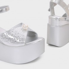 صندل كعب ويدج 10 سم , ذو تصميم أنيق مرصع الستراس مع حبة لؤلؤ, حزام كاحل وإبزيم للإغلاق، يمكن تنسيقه مع إطلالات مختلفة