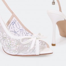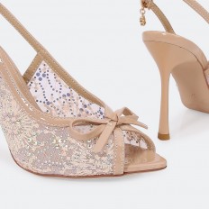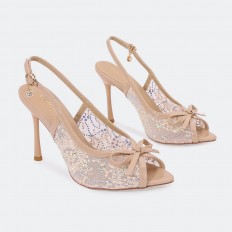 HSQ366 صندل كعب رفيع بجزء من التول مزين بفيونكا - Torino