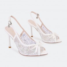 HSQ366 صندل كعب رفيع بجزء من التول مزين بفيونكا