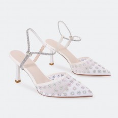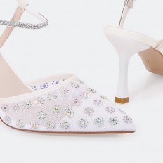 HSQB100 صندل أنيق بخامة من التول مزين بالستراس
