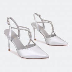 لا غنى عن هذا الصندل ضمن تشكيلة أحذيتك , ذو كعب 9 سم ومقدمة مغلقة مدببة مزينة بحبال من الكريستال, ابزيم للإغلاق، مناسب لكافة الأوقات