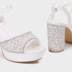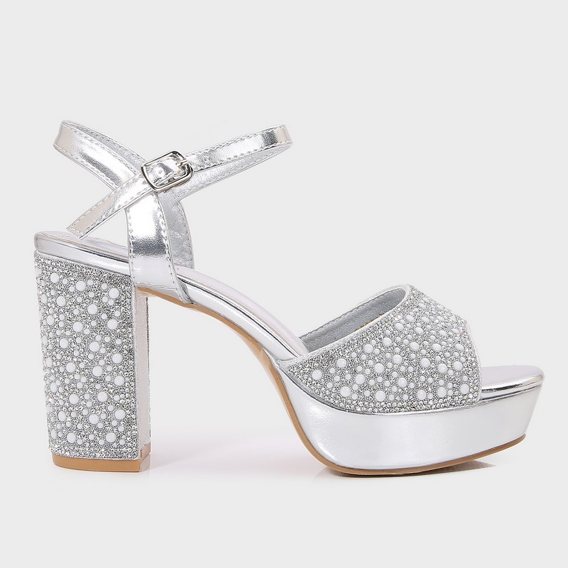 تألقي مع هذا الصندل بكعب 8 سم , ذو تصميم فخم ومقدمة مستديرة مزين بالستراس واللآلئ، حزام كاحل مع إبزيم للإغلاق, متوفر بألوان كلاسيكية