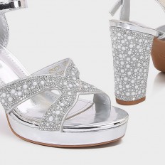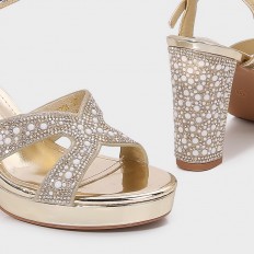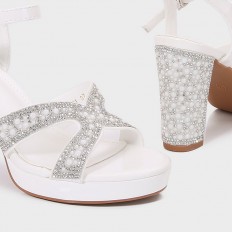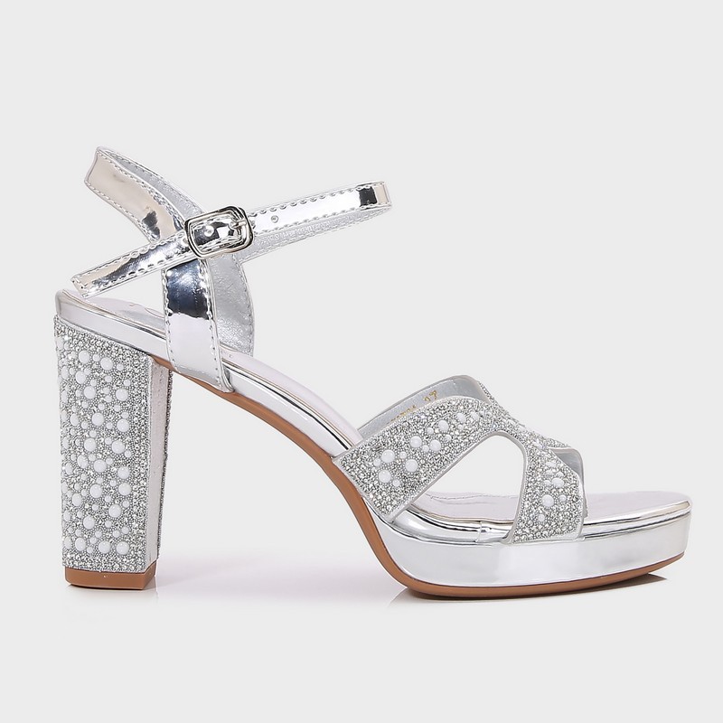 تألقي مع هذا الصندل من تورينو بكعب 9 سم، مقدمة مستديرة مرصعة بالستراس واللؤلؤ ، يمكن تنسيقه مع خيارات مختلفة