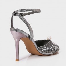 QSQ679 صندل فخم ذو كعب رفيع مزين بالستراس واللآلئ - Torino