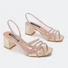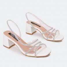 سيصبح هذا الصندل المفضل لديك بكعب عريض 5سم، ذو تصميم أنيق بمقدمة مفتوحة مربعة شفافة مزينة بحبال من الكريستال، يمكن تنسيقه مع إطلالات مختلفة