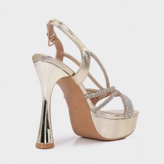 WSQH14 صندل كعب عالي لامع ذومقدمة مفتوحة مرصعة بالستراس - Torino