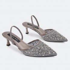تألقي مع هذا الصندل ذو كعب 5 سم , ومقدمة مدببة مغلقة مزين بحبات الستراس البراق , حزام كاحل و إبزيم للإغلاق , مناسب لكافة الأوقات