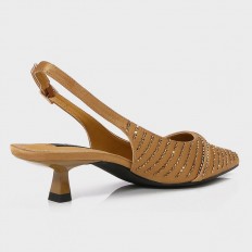 نقدم لكِ هذا الصندل من تورينو , ذو كعب قصير 2سم، مقدمة مدببة بخامة من الساتان المزين بالستراس، مع حزام كاحل للإغلاق، مناسب لكافة الأوقات