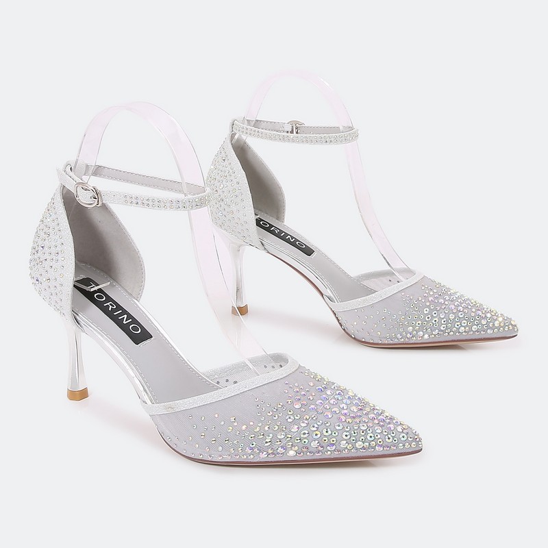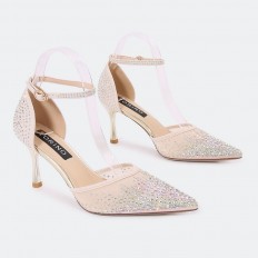 لا غنى عن هذا الصندل بكعب 7 سم في تشكيلة أحذيتك , تصميم فخم بجزء من التول مزين بالستراس , يمكن تنسيقه مع إطلالات مختلفة