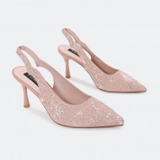 ستكتمل إطلالتك مع هذا الصندل ذو كعب 7 سم وتصميم أنيق مزين بالستراس البراق , ومتوفر بألوان أساسية