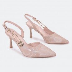 تألقي مع هذا الصندل من تورينو، ذو كعب رفيع 7سم ، خامة أنيقة مزركشة مع حزام كاحل للإغلاق مزين باكسسوار، مناسب لكافة الأوقات