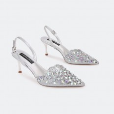 QSQ596 صندل مزين بالستراس البراق ذو كعب رفيع - Torino