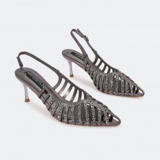 تألقي مع هذا الصندل بكعب 7 سم , ذو تصميم فخم ومقدمة مدببة مغلقة مزين بالستراس , حزام كاحل بإبزيم للإغلاق , يمكن تنسيقه مع إطلالات مختلفة
