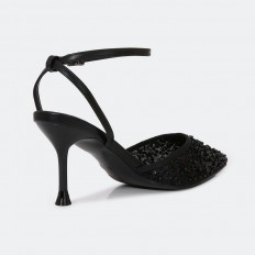 تألقي مع هذا الصندل من تورينو، ذو كعب 7 سم رفيع، ومقدمة مغلقة مدببة مزينة بالترتر مع إبزيم للإغلاق، يمكن تنسيقه مع خيارات مختلفة