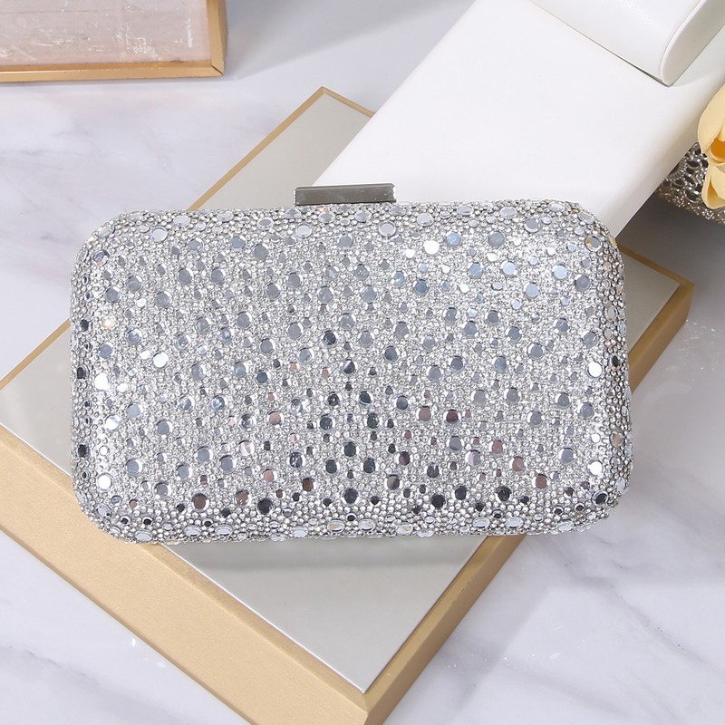 حقيبة سهرة مرصعة بالكريستال تضفي لمسة من الفخامة والرقي على إطلالتك في المناسبات الخاصة. هذه الحقيبة مثالية للسهرات وحفلات الزفاف، حيث تتماشى مع الفساتين الأنيقة وتضيف بريقاً خاصاً.