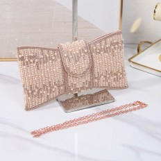 أضيفي لمسة من الأناقة والرقي إلى إطلالاتك مع هذه الحقيبة، مزينة باللؤلؤ البراق، متوفرة بألوان يمكن تنسيقها مع اطلالات مختلفة