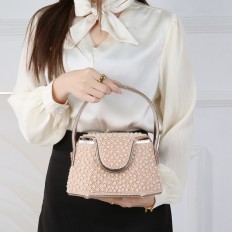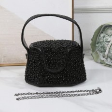 حقيبة سهرة بتصميم أنيق يفيض بالفخامة مزينة باللآلئ، تضيف لمسة راقية لأي إطلالة مسائية، وتجعل حضورك أ كثر جاذبية وثقة