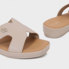 لا تترددي بشراء هذا النعال الطبي من تورينو، بخامة من الجلد الصناعي مفرغ من الجوانب لراحتك، مزين ببروش حرف R
