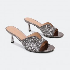 BXQ1760 نعال كعب لامع مزين باللؤلؤ