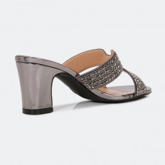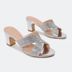 تميزي بإطلالتك مع هذا النعال بكعب عريض 5سم , وتصميم عصري مزين بالستراس البراق, متوفر بألوان أنيقة
