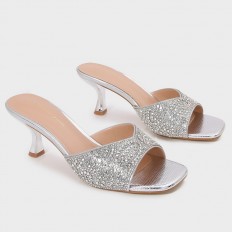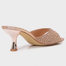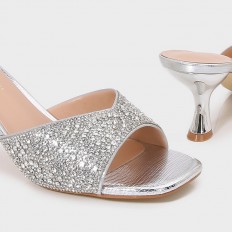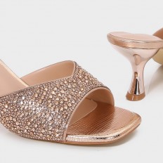BXQ2126 نعال كعب ذو مقدمة مربعة مزينة بالستراس - Torino