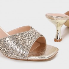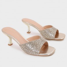 BXQ2126 نعال كعب ذو مقدمة مربعة مزينة بالستراس