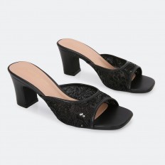 BXQ2146 نعال كعب ذو مقدمة مربعة بجزء من التول