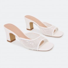تألقي مع هذا النعال من تورينو بكعب عريض 5سم, تصميم فخم ذو مقدمة مربعة بجزء من التول، مناسب لكافة الأوقات