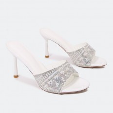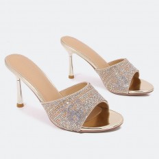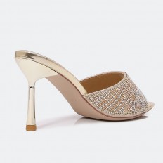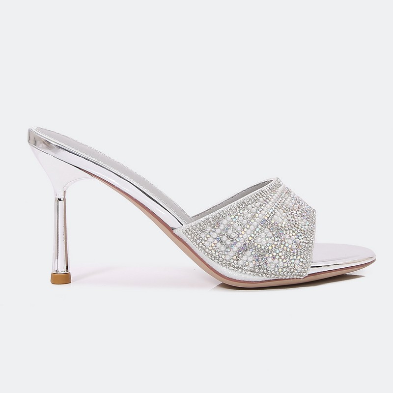 تألقي بفخامة إطلالتك في المناسبات والحفلات عند ارتداءك نعال ستيليتو لامع بتصميم مفتوح من الأمام. وكعب 9سم مزين بالستراس.