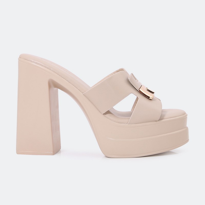 يجمع هذا النعال بين الراحة و الأناقة , كعب بلاتفورم 9 سم مزين ببروش حرف H , مناسب لكافة الأوقات