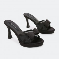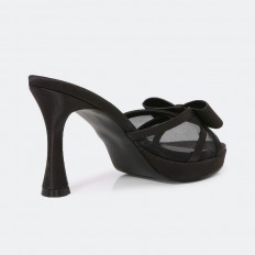 يجمع هذا النعال بين الراحة و الأناقة , بكعب 9 سم وجزء أمامي من التول مزين بفيونكة , مناسب لكافة الأوقات