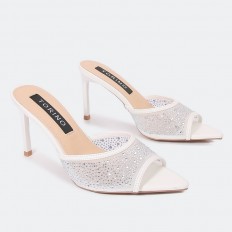 MXQ1744 نعال كعب رفيع مزين بالستراس - Torino